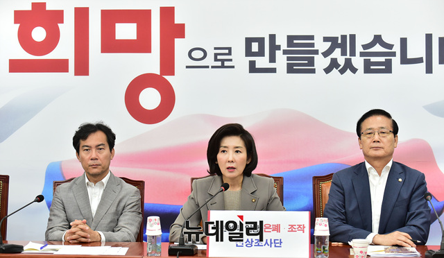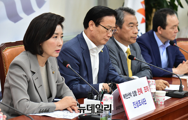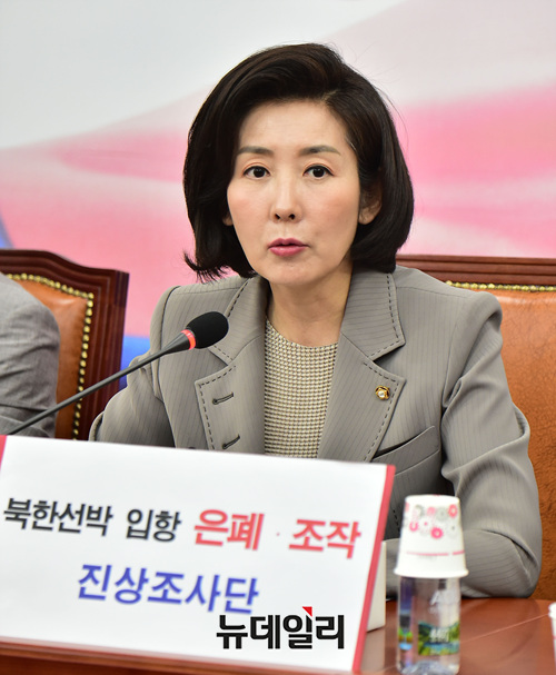 나경원 자유한국당 원내대표가 26일 오전 국회에서 열린 북한선박입항 진상조사단 회의에 참석해 모두발언을 하고 있다.