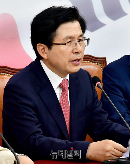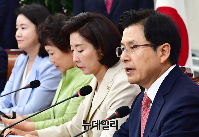 황교안 자유한국당 대표가 27일 오전 국회에서 열린 최고위원회의에서 모두발언을 하고 있다.