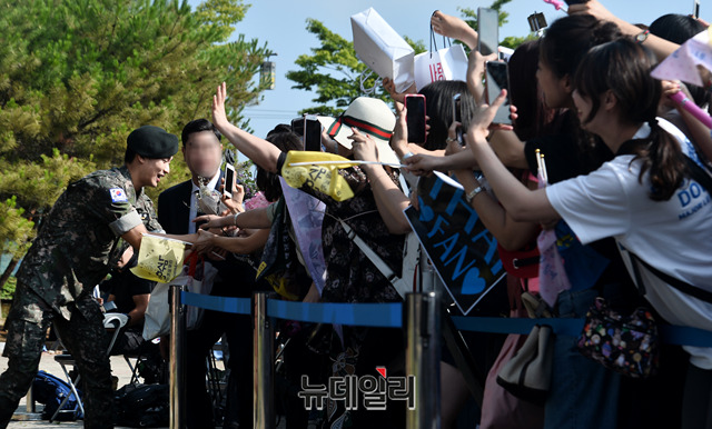 [포토] 만기전역한 김수현, 팬들 향해 손 인사