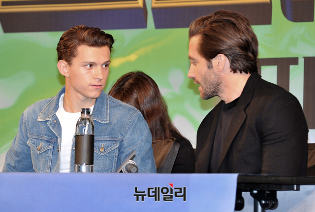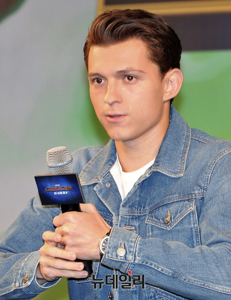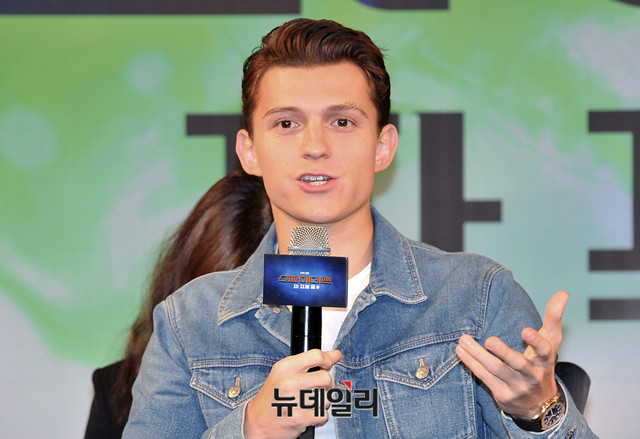 배우 톰 홀랜드가 1일 오전 서울 종로구 포시즌스호텔에서 열린 영화 '스파이더맨: 파 프롬 홈' 내한 기자간담회에 참석해 인사말을 하고 있다.