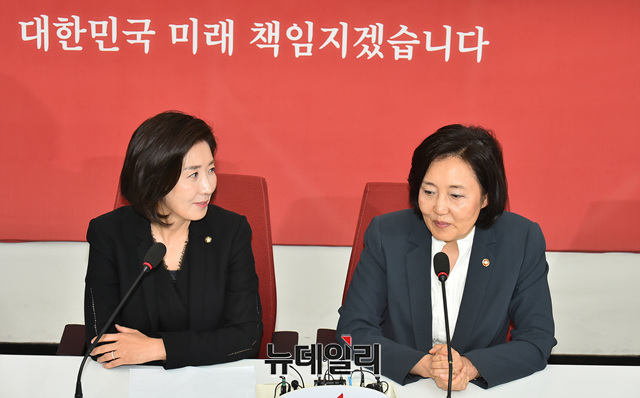 박영선 중소벤처기업부 장관이 1일 오전 국회에서 나경원 자유한국당 원내대표를 예방하고 있다.