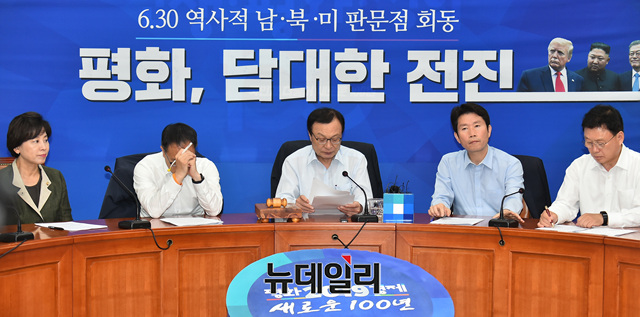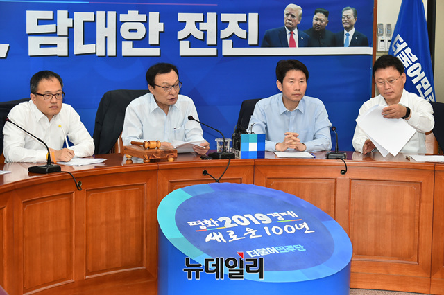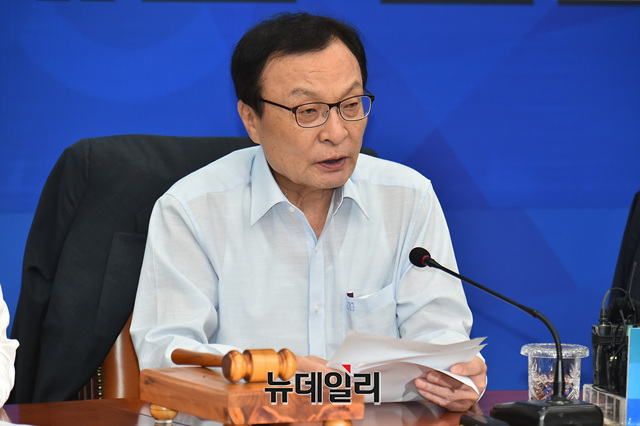 이해찬 더불어민주당 대표가 1일 오전 국회에서 열린 최고위원회의에 참석해 모두발언을 하고 있다.