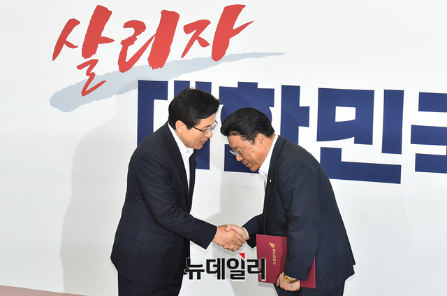 [포토] 임명장 받은 박맹우 자유한국당 신임 사무총장