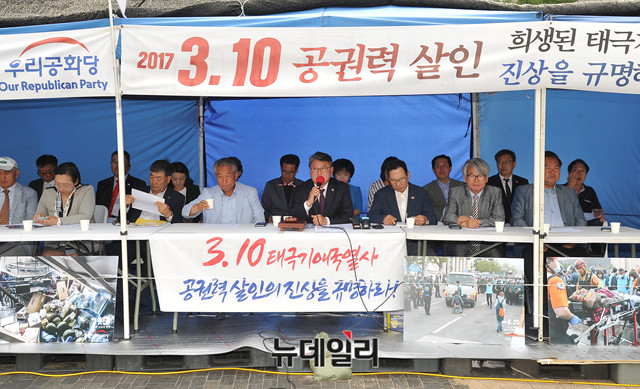 [포토] 조원진 "광화문 천막 다시 설치하겠다"