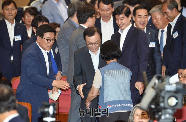 [포토] 중앙위 입장하는 이해찬 민주당 대표