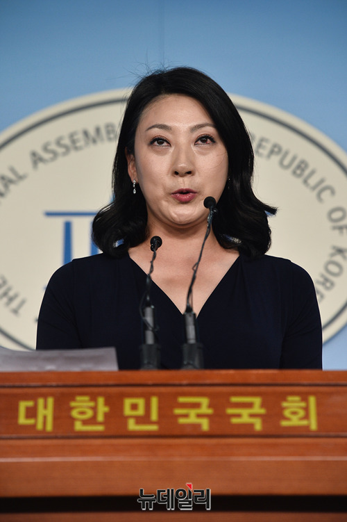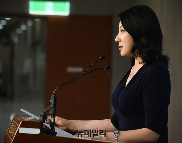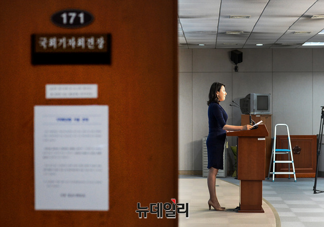 [포토] 우리공화당 천막 당사 관련 브리핑하는 박건희 대변인