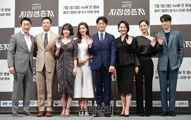 tvN 새 월화드라마 '60일, 지정생존자' 출연배우들이 1일 오후 서울 강남구 임피리얼팰리스 호텔에서 열린 제작보고회에서 포토타임을 갖고 있다.'60일, 지정생존자'는 갑작스러운 국회의사당 폭탄 테러로 대통령을 잃은 대한민국에서 환경부 장관이 60일간의 대통령 권한대행으로 지정되면서 테러의 배후를 찾으며 그리는 이야기를 담았다.같은 이름의 미국 드라마 '지정생존자(Designated Survivor)'를 원작으로 로컬화를 거쳐 원과 차별화된 오리지널리티를 선보일 예정이다.