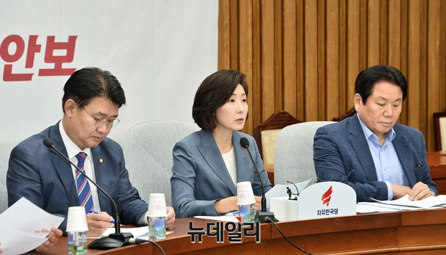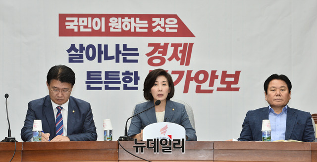 나경원 자유한국당 원내대표가 2일 오전 국회에서 열린 원내대책회의에서 모두발언을 하고 있다.