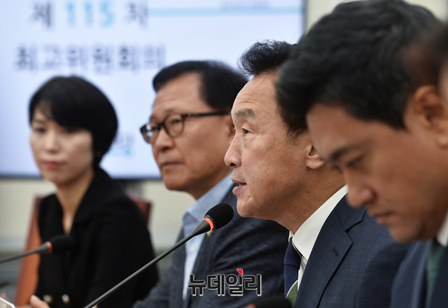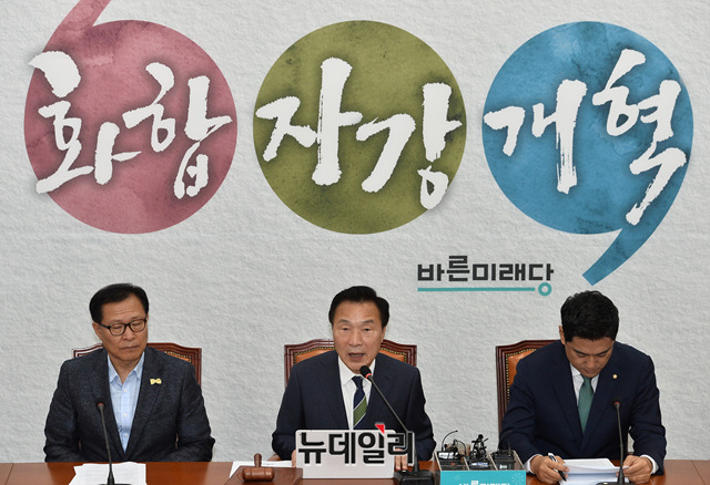 손학규 바른미래당 대표가 3일 오전 국회에서 열린 최고위원회의에서 모두발언을 하고 있다.