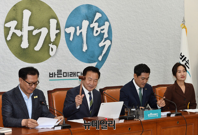 손학규 바른미래당 대표가 3일 오전 국회에서 열린 최고위원회의에서 의사진행을 하고 있다.