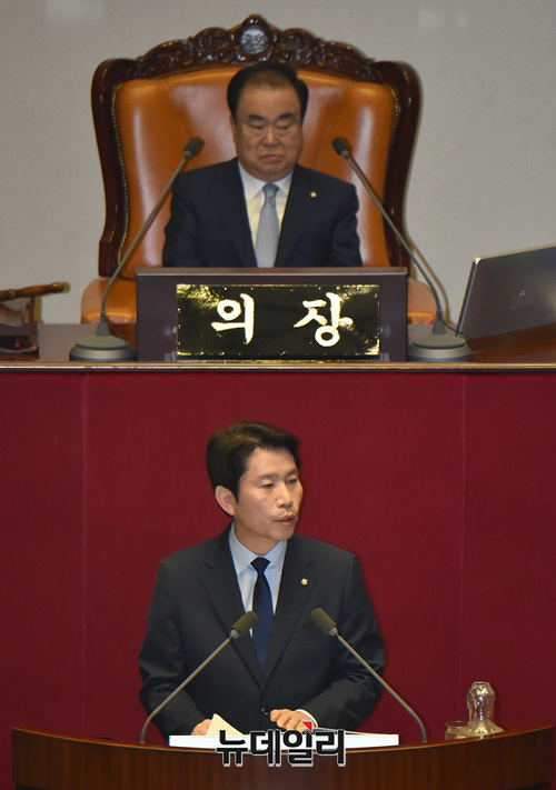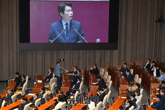 이인영 더불어민주당 원내대표가 3일 오전 국회에서 열린 본회의에서 교섭단체 대표연설을 하고 있다.