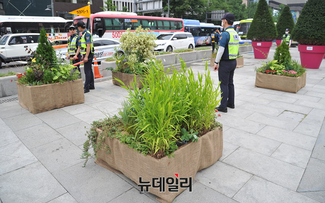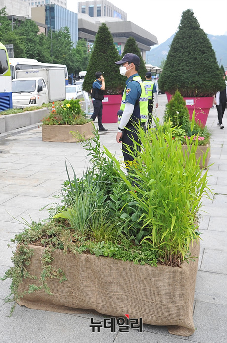 서울시는 우리공화당의 '3차 천막' 설치를 저지하기 위해 광화문 광장에 총 135개의 대형 화분을 설치했다.