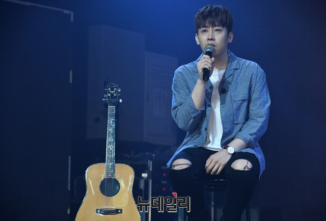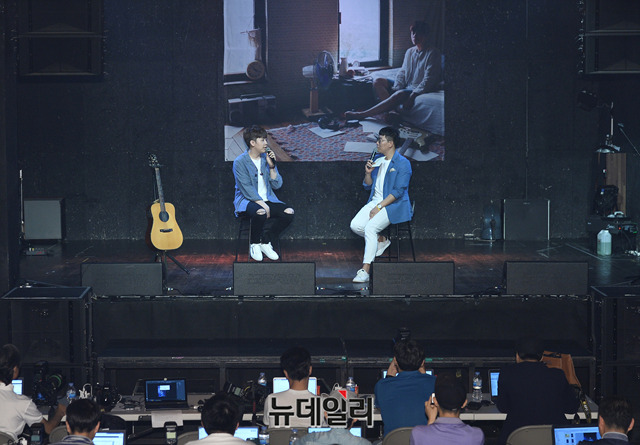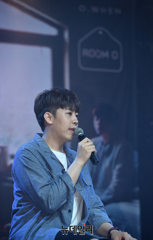 '가수 오왠(O.WHEN)'이 3일 오후 서울 마포구 하나투어 브이홀에서 열린 첫 번째 정규앨범 '룸 오(ROOM O)' 쇼케이스에서 앨범 소개를 하고 있다.