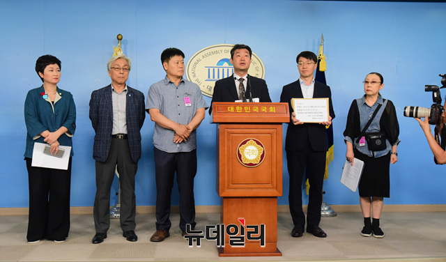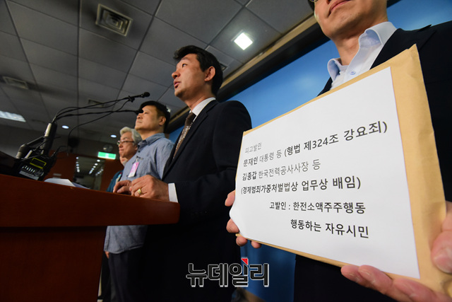 이언주 무소속 의원과 행동하는 자유시민 관계자들이 4일 오전 국회 정론관에서 '한전소액주주 소송' 관련 기자회견을 하고 있다.