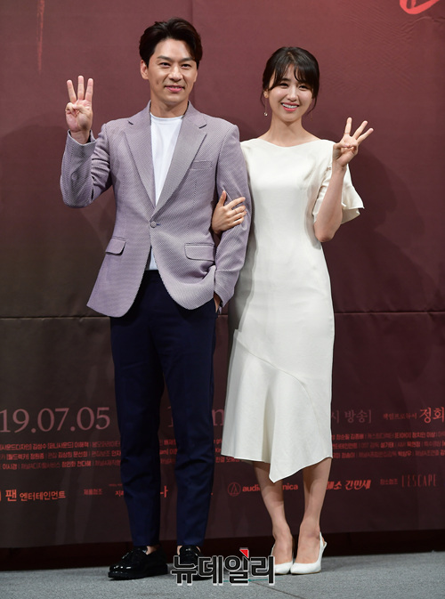 배우 정상훈, 박하선이 4일 오후 서울 강남구 임피리얼팰리스 호텔에서 열린 채널A 금토드라마 '평일 오후 세시의 연인(극본 유소정, 연출 김정민 민정아)' 제작보고회에서 포토타임을 갖고 있다.