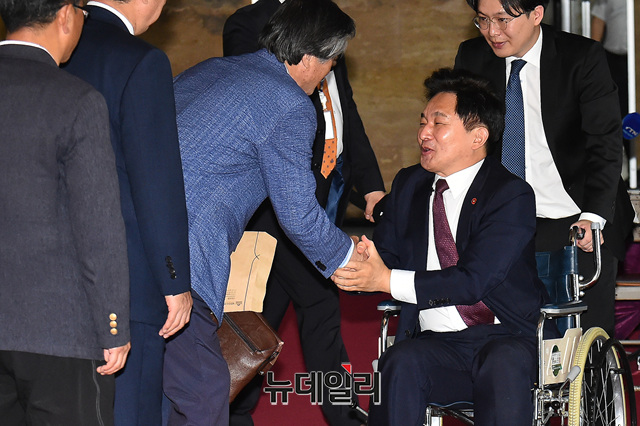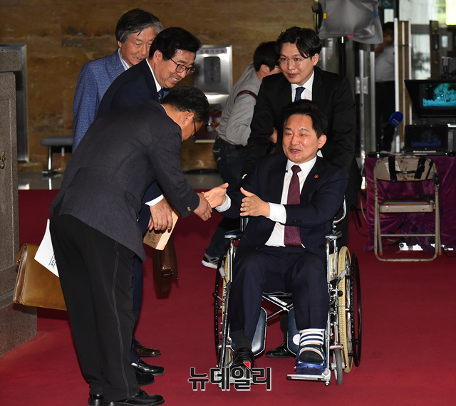 [포토] 휠체어 타고 국회 찾은 원희룡 제주도지사