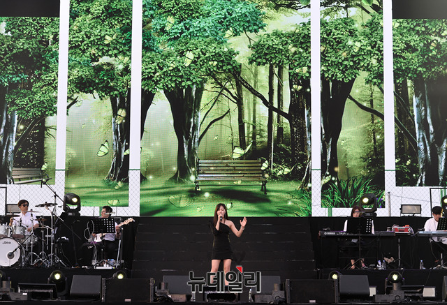 TV조선 트롯 오디션 프로그램 '내일은 미스트롯(이하 미스트롯)' 출신 가수 정다경이 4일 오후 인천 옹진군 백령도에서 열린 '미스트롯 백령도 평화 콘서트'에서 무대를 선보이고 있다.