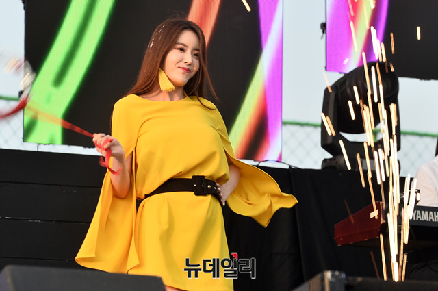 TV조선 트롯 오디션 프로그램 '내일은 미스트롯(이하 미스트롯)' 출신 가수 박성연이 4일 오후 인천 옹진군 백령도에서 열린 '미스트롯 백령도 평화 콘서트'에서 무대를 선보이고 있다.