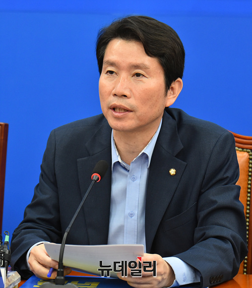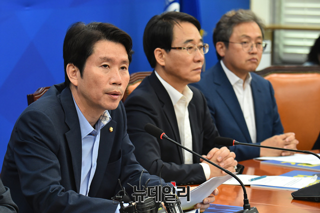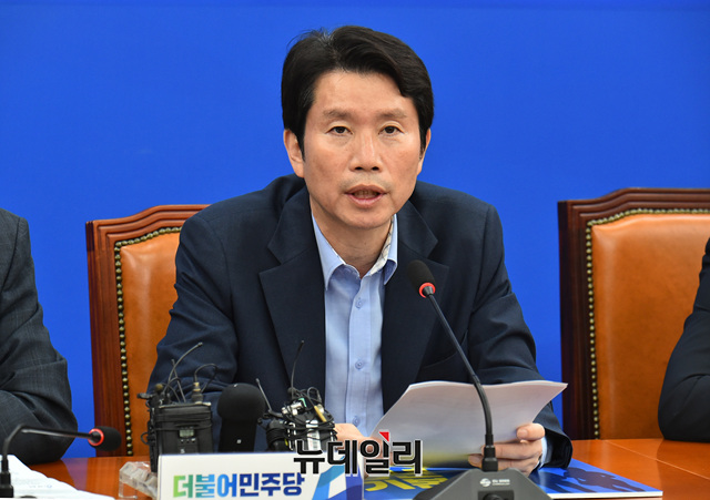 이인영 더불어민주당 원내대표가 5일 오전 국회 원내대표실에서 열린 '민생입법추진단 입법과제 발표를 위한 추진단 회의'에서 모두발언하고 있다.