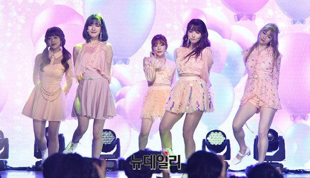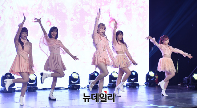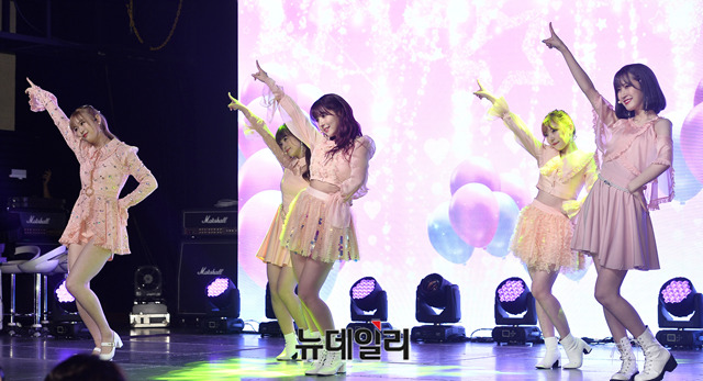 걸그룹 '허니팝콘(Honey Popcorn)'이 5일 오후 서울 마포구 제일라아트홀에서 열린 두 번째 앨범 '디에세오스타(Deaeseohsta)' 쇼케이스에서 무대를 선보이고 있다.