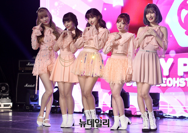 일본인으로 구성된 걸그룹 '허니팝콘(Honey Popcorn)'이 5일 오후 서울 마포구 제일라아트홀에서 열린 두 번째 앨범 '디에세오스타(Deaeseohsta)' 쇼케이스에서 포토타임을 갖고 있다.이번 앨범 이름과 같은 타이틀곡 '디에세오스타'는 상큼하고 사랑스러운 소녀의 풋풋한 마음과 꿈을 담은 곡. 음원은 오후 6시에 공개된다.'허니팝콘'은 기존 멤버 유아, 모코를 포함해 이번 앨범부터 합류한 나코, 루카, 사라까지 5인조로 구성됐다.