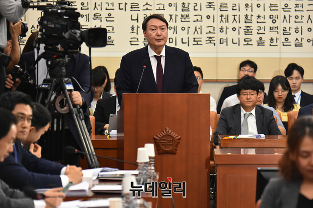 윤석열 검찰총장 후보자가 8일 오전 국회 법제사법위원회에서 열린 인사청문회에 참석해 모두발언을 하고 있다.