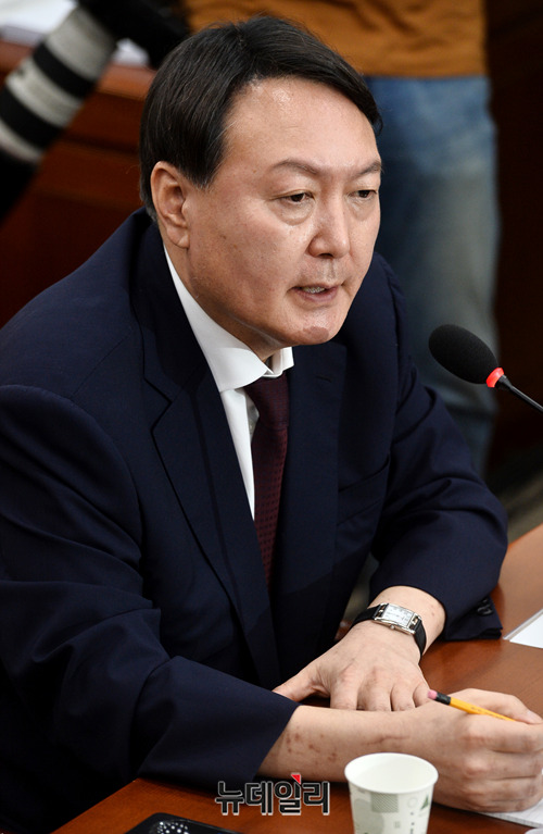 윤석열 검찰총장 후보자가 8일 오전 국회 법제사법위원회에서 열린 인사청문회에서 의원들의 질문에 답하고 있다.