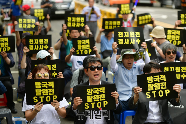 조혜선 천지원전비대위 위원장이 8일 오후 서울 종로구 효자치안센터 앞에서 열린 '탈원전 반대, 천지원전 불법고시해제 결사저지 결의대회'에서 발언하고 있다.천지원전비상대책위원회, 행동하는자유시민, 자유연대, 턴라이트, 자유대한호국단 등이 공동 주최한 이날 집회에서 이들은 성명을 통해 △'망국적 탈원전' 즉각 중단 △천지원전 1,2호기 고시해제 중단 △신한울원전 3, 4호기 건설 재개 △탈원전 정책실패, 한전과 국민에게 전가하지 말것 등을 요구했다.