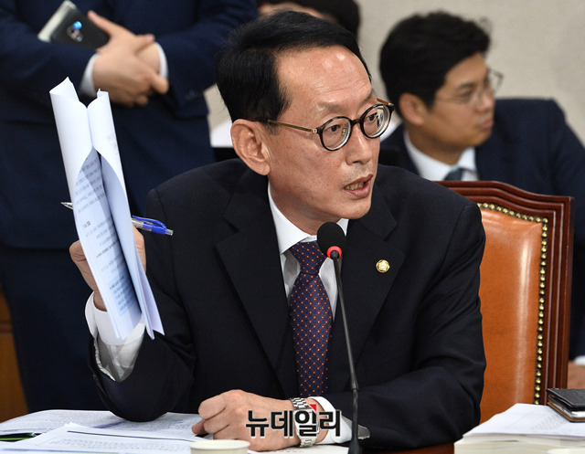 김도읍 자유한국당 간사가 8일 오후 국회 법제사법위원회에서 열린 윤석열 검찰총장 후보자 인사청문회에서 윤 후보에게 질문을 하고 있다.