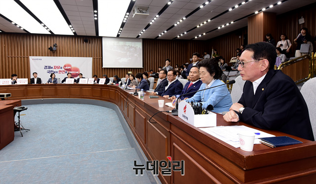 국회 법사위 자유한국당 간사를 맡고 있는 김도읍 의원이 9일 오전 국회에서 열린 원내대책회의에서 모두발언을 하고 있다. 김 의원은 윤석열 검찰총장 후보자가 양정철 민주연구원장과 올해 초 만난 것에 대해 "4월 회동했음에도 1월 또는 2월이라고 거짓말을 한 것은 자신이 '정치검사가 아니라는 것'을 강변하기 위한 거짓말인 것으로 보인다"며 "3월 하순이 양 원장이 전격적으로 정치일선에 나서는 시기였기 때문"이라고 주장했다.