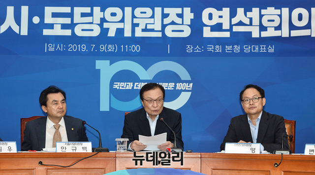 이해찬 더불어민주당 대표가 9일 오전 국회에서 열린 전국 시도당위원장 연석회의에서 모두발언을 하고 있다.