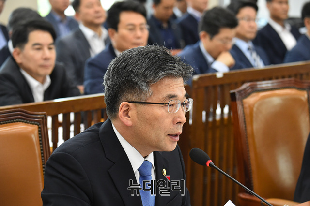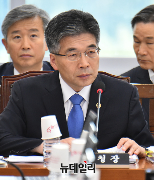 민갑룡 경찰청장이 9일 오전 국회에서 열린 행정안전위원회 전체회의에 출석해 의원 질문에 답하고 있다.