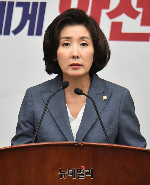 나경원 자유한국당 원내대표가 9일 오후 국회에서 열린 의원총회에 참석해 모두발언을 하고 있다.