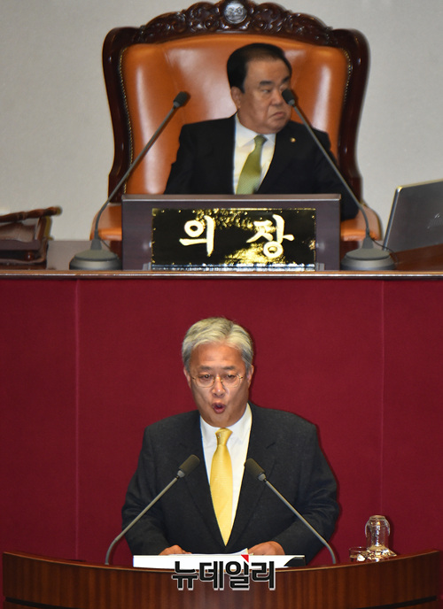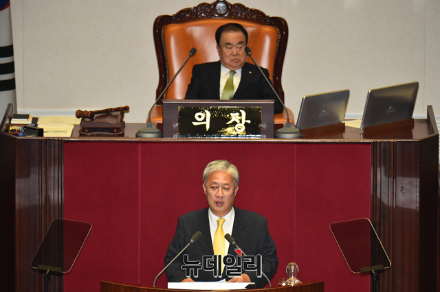 유성엽 민주평화당 원내대표가 9일 오후 국회 본회의장에서 비교섭단체 대표연설을 하고 있다.