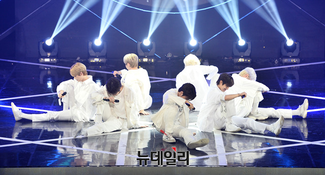 아이돌그룹 OnlyOneOf(온리원오프)가 9일 오후 서울 마포구 SBS 프리즘타워에서 열린 SBS MTV '더 쇼(THE SHOW)' 생방송에서 무대를 선보이고 있다.