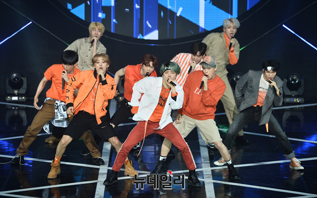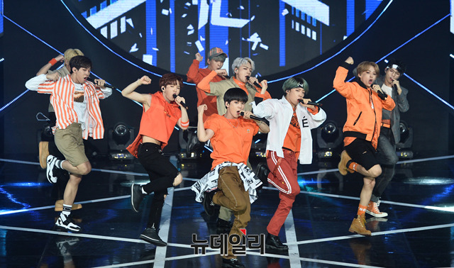 아이돌그룹 디크런치가 9일 오후 서울 마포구 SBS 프리즘타워에서 열린 SBS MTV '더 쇼(THE SHOW)' 생방송에서 무대를 선보이고 있다.