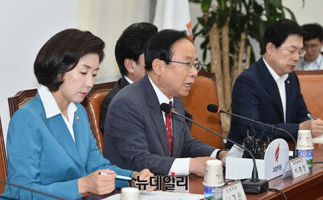 [포토] 한국당 원내대표·중진의원 연석회의, 발언하는 이주영