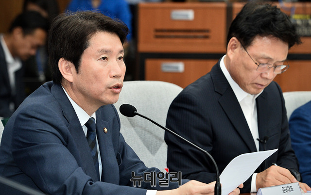 이인영 더불어민주당 원내대표가 10일 오전 국회에서 열린 확대간부회의에서 모두발언을 하고 있다.