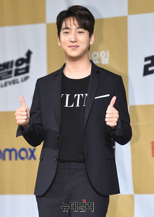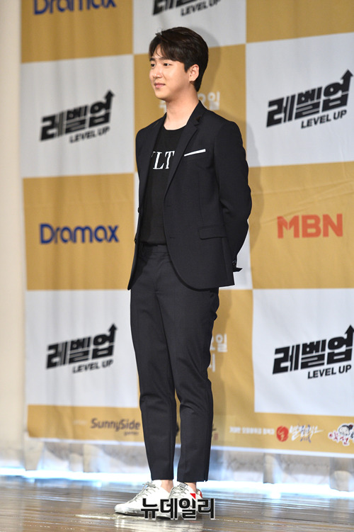 배우 차선우가 10일 오후 서울 서초구 더 리버사이드 호텔에서 열린 MBN 드라마 '레벨업' 제작발표회에서 포토타임을 갖고 있다.