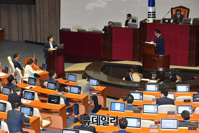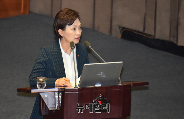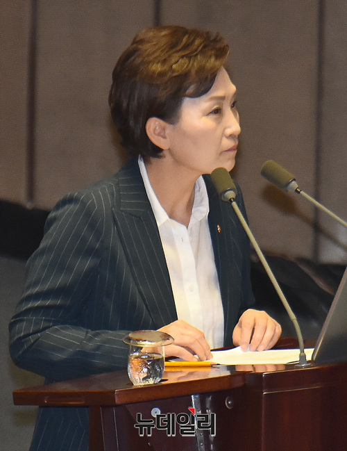 김현미 국토교통부 장관이 10일 오후 국회 본회의장에서 열린 경제 분야 대정부질문에서 의원들의 질문에 답하고 있다.