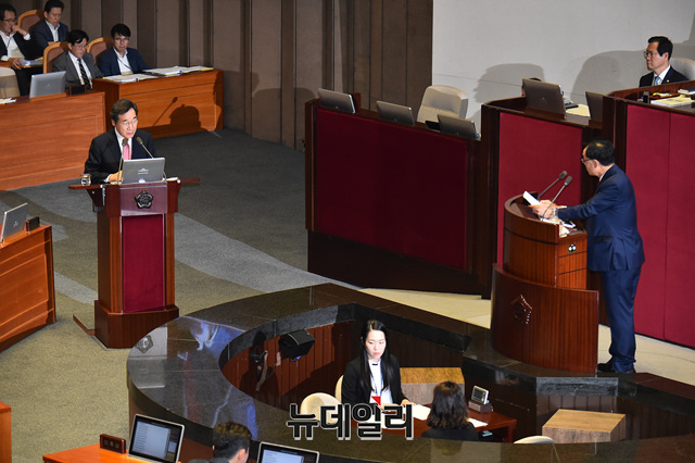 이낙연 국무총리가 10일 오후 국회 본회의장에서 열린 경제 분야 대정부질문에서 의원들의 질문에 답하고 있다.