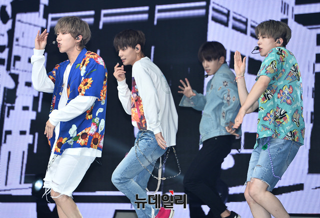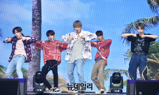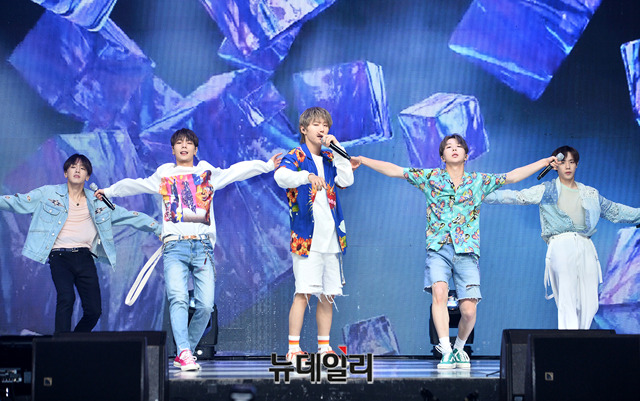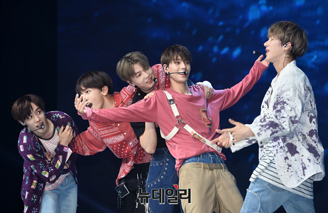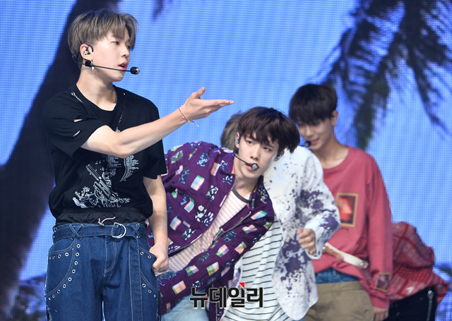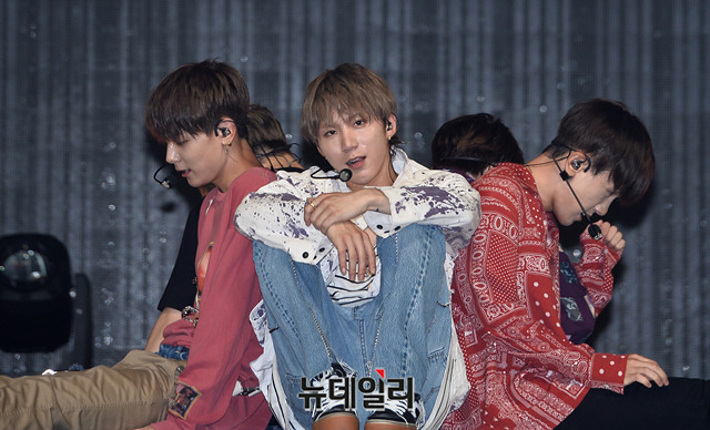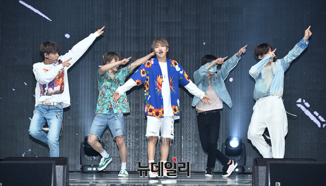 아이돌그룹 1TEAM(원팀)이 10일 오후 서울 광진구 예스24 라이브홀에서 열린 두 번째 미니앨범 'JUST(저스트)' 쇼케이스에서 무대를 선보이고 있다.