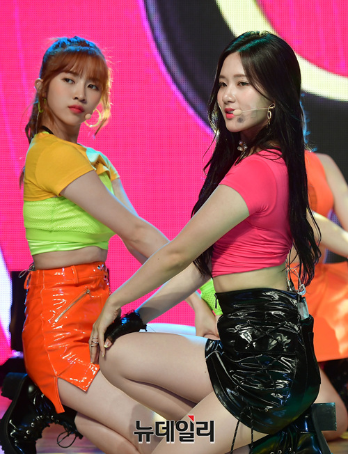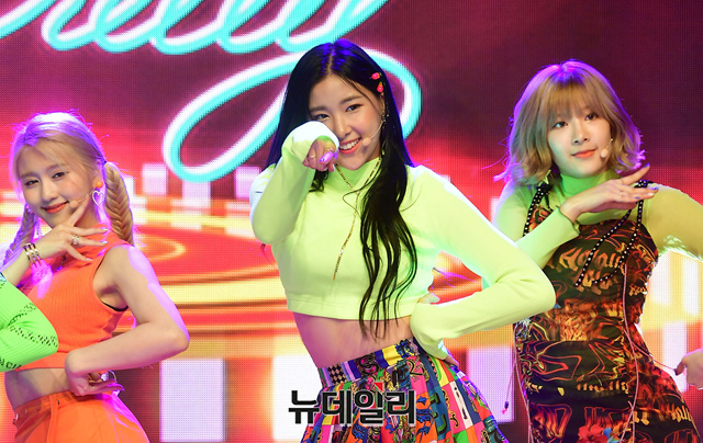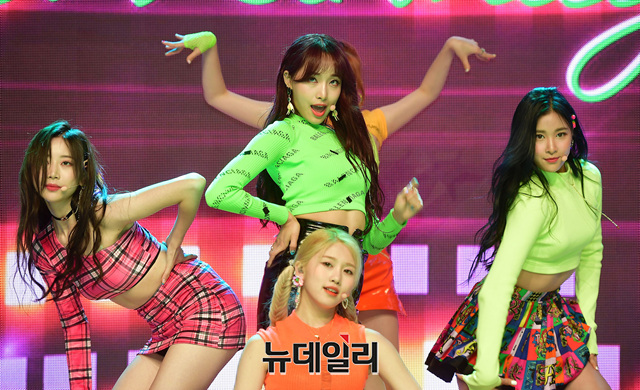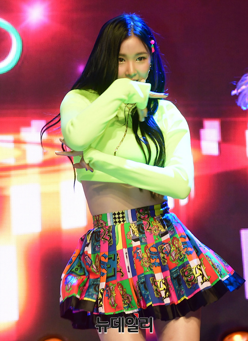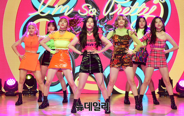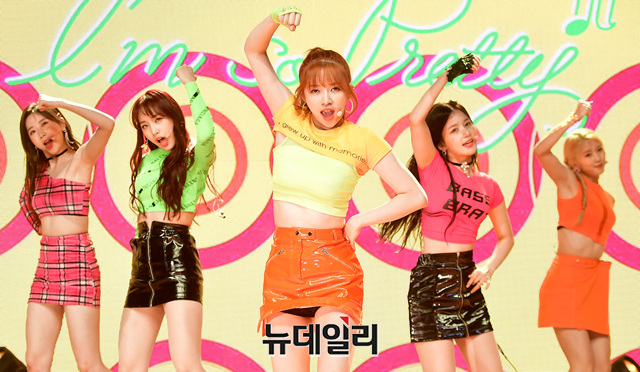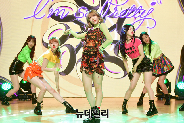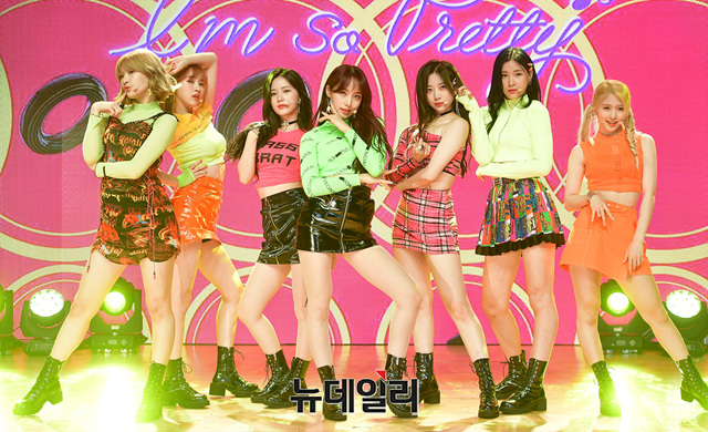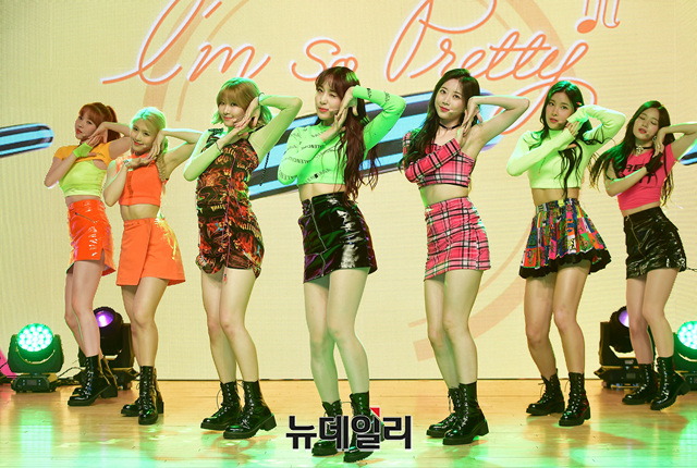 걸그룹 '네이처(NATURE)'가 10일 오후 서울 강남구 일지아트홀에서 첫 번째 미니앨범 'I'm So Pretty(아임 소 프리티)' 쇼케이스에서 타이틀곡 무대를 선보이고 있다.