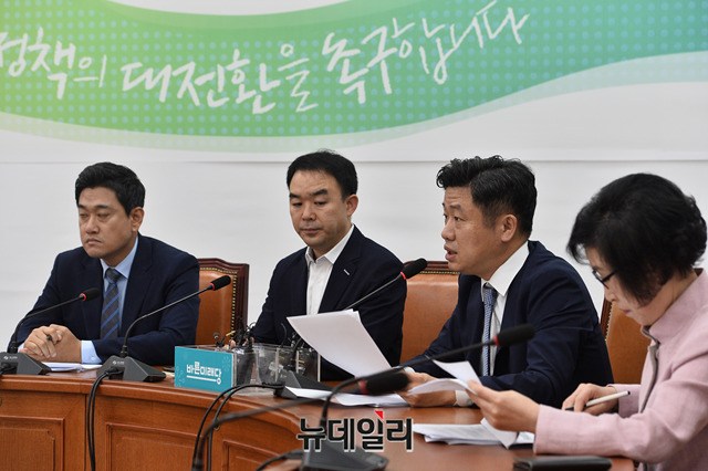유의동 바른미래당 의원이 11일 오전 국회에서 열린 원내대책회의에서 모두발언을 하고 있다.