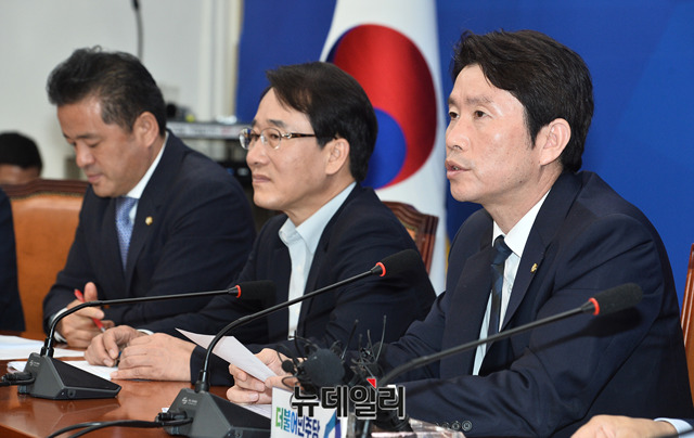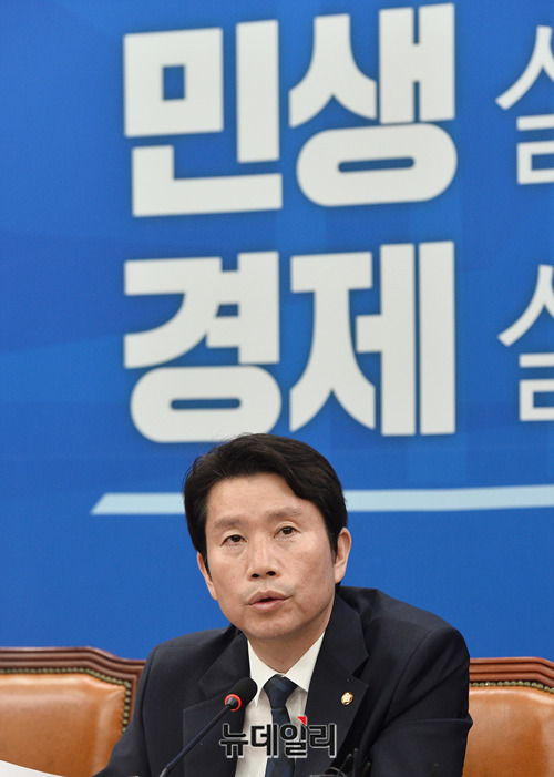 이인영 더불어민주당 원내대표가 11일 오전 국회에서 열린 정책조정회의에서 모두발언을 하고 있다.