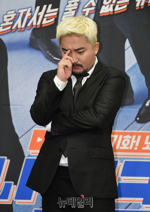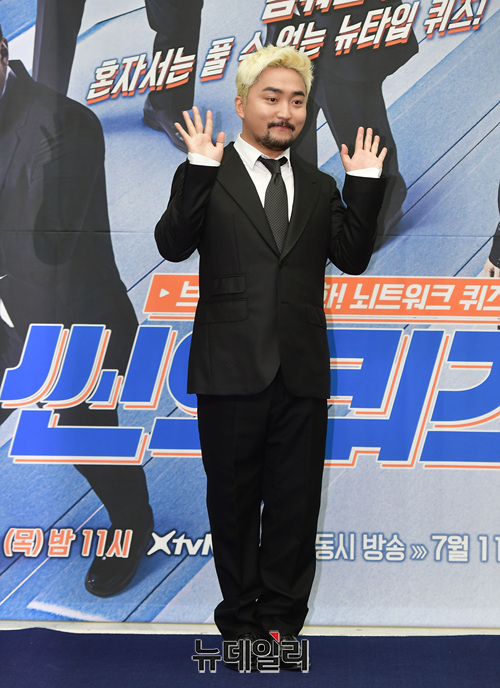 개그맨 유병재가 11일 오전 서울 마포구 스탠포드호텔에서 열린 XtvN '씬의 퀴즈' 제작보고회에서 포토타임을 갖고 있다.