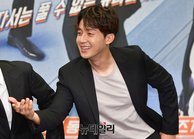 개그맨 허경환이 11일 오전 서울 마포구 스탠포드호텔에서 열린 XtvN '씬의 퀴즈' 제작보고회에서 포토타임을 갖고 있다.
