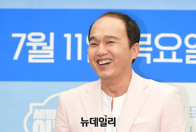 배우 김광규가 11일 오후 서울 마포구 스탠포드호텔에서 열린 MBC에브리원 예능 '세빌리아의 이발사(연출 김동호)' 제작보고회에서 포토타임을 갖고 있다.