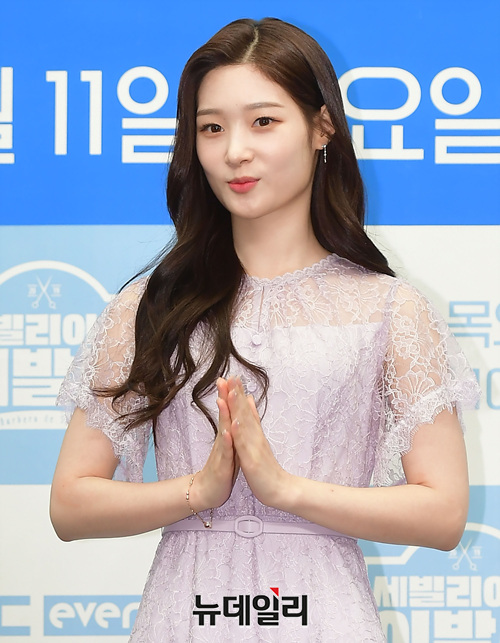 다이아 정채연이 11일 오후 서울 마포구 스탠포드호텔에서 열린 MBC에브리원 예능 '세빌리아의 이발사(연출 김동호)' 제작보고회에서 포토타임을 갖고 있다.