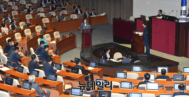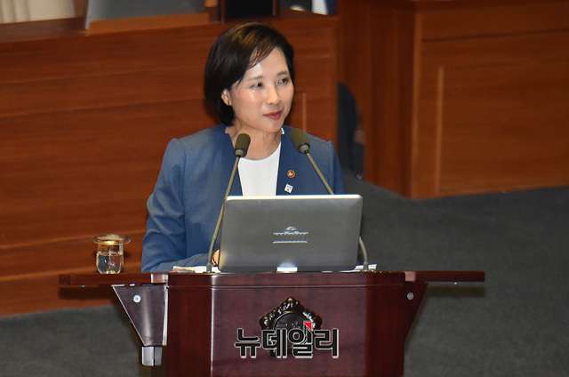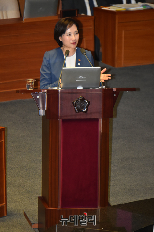 유은혜 사회부총리 겸 교육부 장관이 11일 오후 국회 본회의장에서 열린 교육·사회·문화분야 대정부질문에 출석해 의원들의 질문에 답하고 있다.
